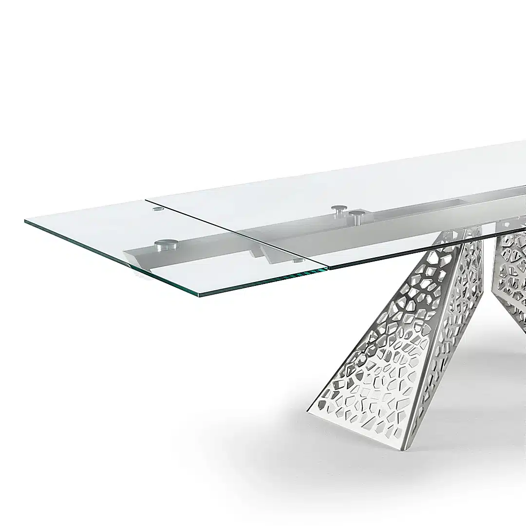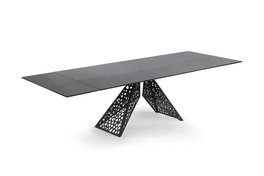 - Plateau et rallonges : verre trempé (standard) ou céramique (en option).