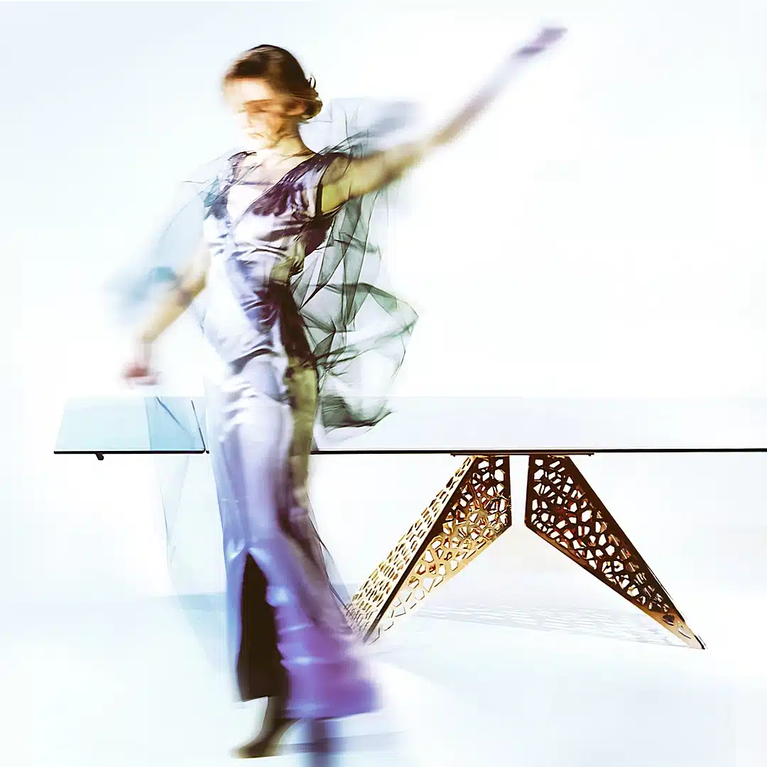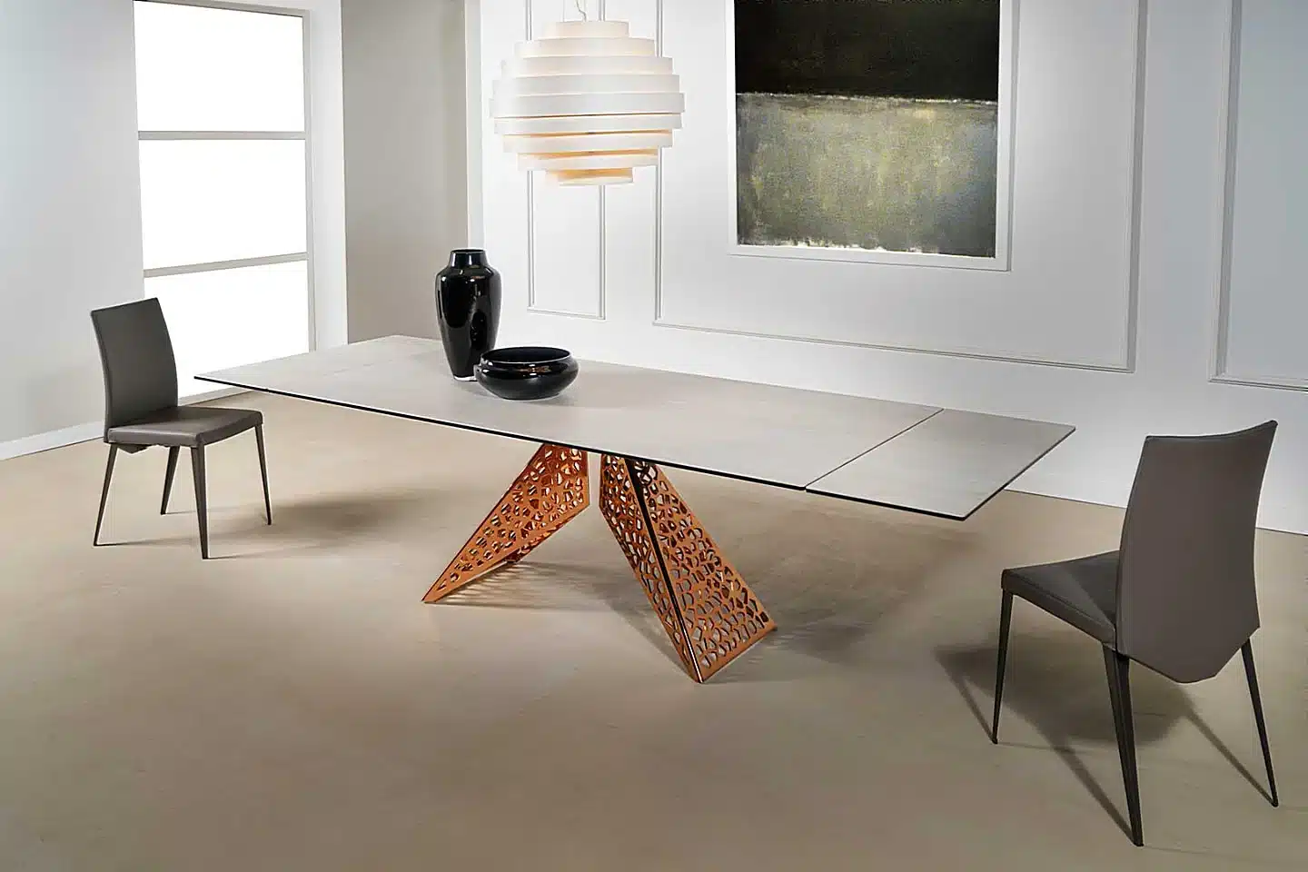 La table à manger Coliseum allie avec raffinement design italien, innovation mécanique et présence sculpturale.